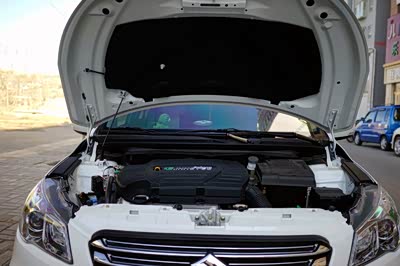 依旧是熟悉而醒目并带有行车信息显示屏的仪表盘,可惜不是自发光,不知中高配的是不是自发光?手套箱没有阻尼,中央扶手箱空间显小以及主副驾遮阳板均配备梳妆镜但未配备照明灯略显不厚道。但单碟CD并兼顾AUX及USB接口就比较厚道,然后是一条拉丝银装饰条贯穿四个车门和整个中控面板,让工作台看起来层次分明,档把、出风口、媒体区及空调按钮都有镀铬点缀,很打眼。配备前雾灯且大灯高度可调、点按式后备厢开启较原来拉杆式更显得便捷厚道、四门电动车窗及外后视镜电动调节得以标配、尤其是主驾驶侧车窗玻璃一键式起落得以保留(一般只有一键降而没有一键升)、发动机仓布局规整且机盖配备隔热隔音棉、四轮碟刹外加全尺寸备胎和花美的多幅铝合金轮毂以及后车牌照明灯旁边预留摄像头安装口都显示出铃木的诚意。