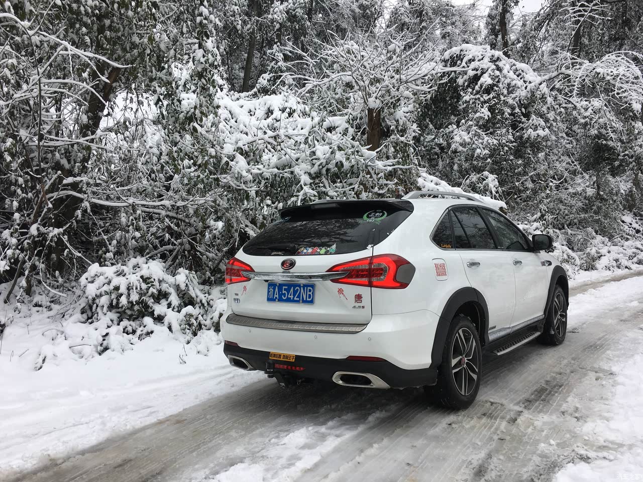 在冰雪覆盖的道路上,爬山越野,感觉非常不错,对于杭州来说,很难得有这样的机会,所以下雪天我一定会开着唐出去爽一下,而且15款唐的轮胎也比较厚,不必担心轮胎被扎的问题。全时电四驱的动态响应非常不错,几乎没有任何的打滑,及时打开雪地模式就可以了。雪地模式可以在纯电模式和混动模式下同时打开。