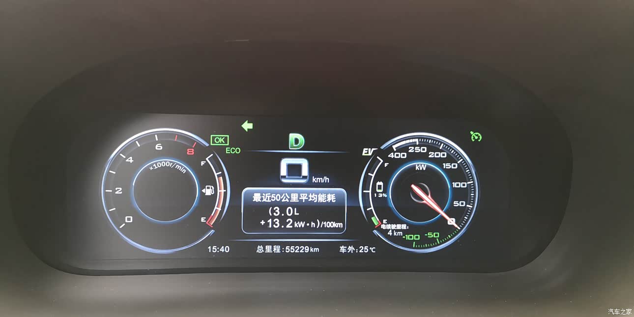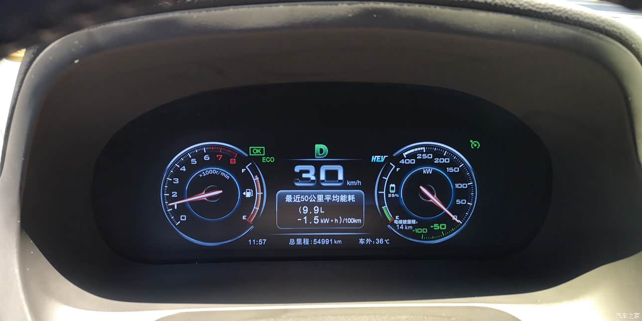 现在秋季,气温是比较合适的,理论上是比较适合续航。而且不需要开空调,也比较节能,如果跑城市快速路,将车速控制在60~70km/h,电量从100%消耗到15%,基本上能跑53公里左右。当然,这个还跟路况和载重和每个人的驾驶习惯有关联。关于能耗方面,只需要掌握一个原则,低速的时候尽量用纯电,速度高于70且保持匀速行驶的时候,开启混动模式保电,尽可能保持平稳的行驶,就能获得一个不错的能耗。