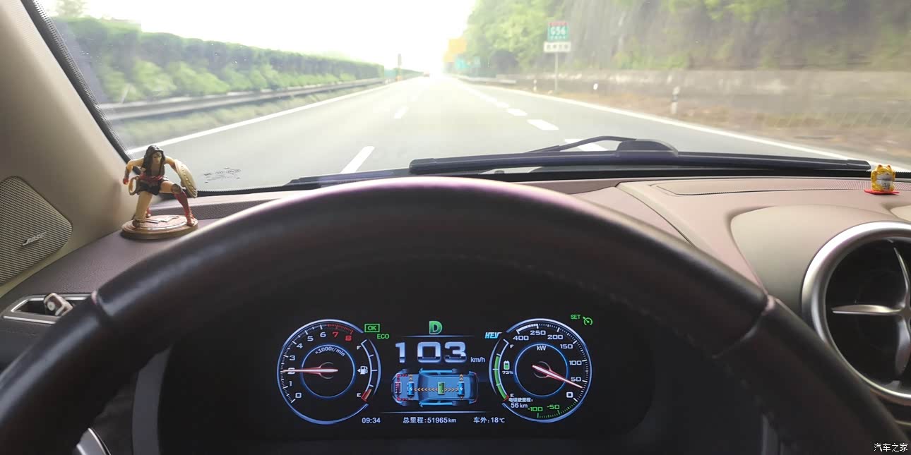 上周去过宁波,跑了一个小长途,除了油耗增加一些,动力还是非常不错的,在高速上基本能压着限速跑,虽然没有ACC,但即便用定速巡航开下来也并不累,而且使用定速巡航能很好的保住电量,下高速可以继续使用纯电模式行驶。跑高速最关键的就是动力要好,这车动力随叫随到,比较得心应手的,不过不能连续超车,否则这样电量保持不住。