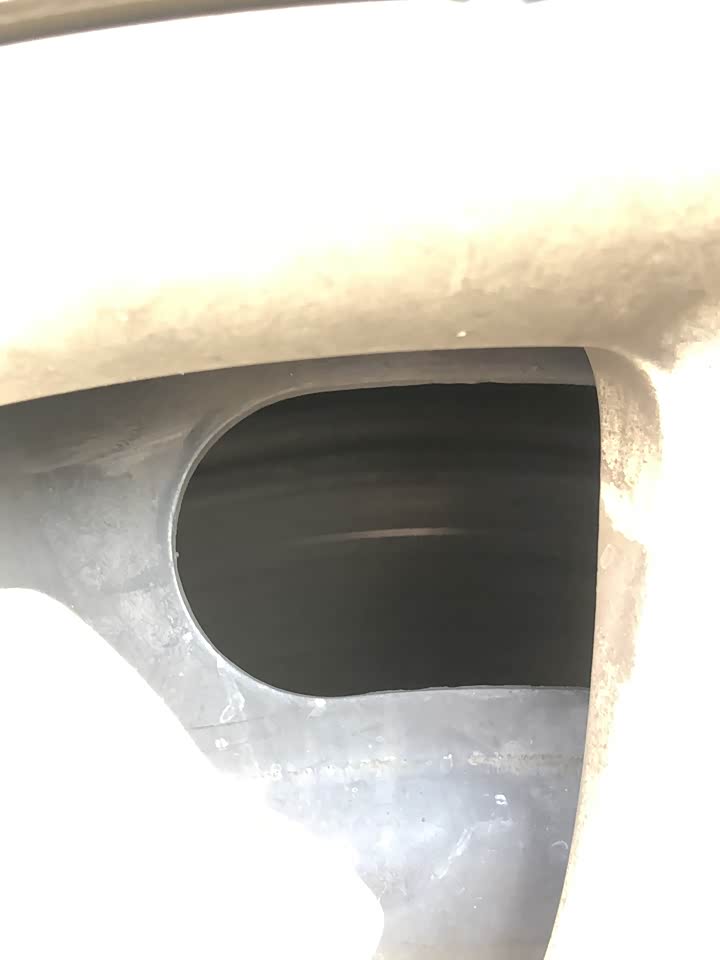 这是没拆轮胎拍的照片,可以很清除的看到刹车盘的凹痕
