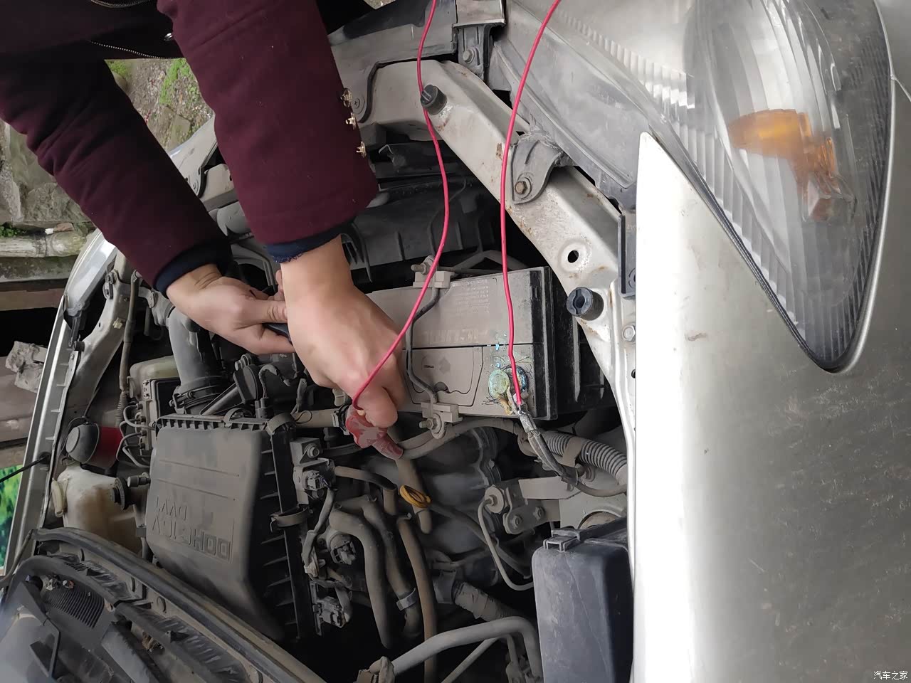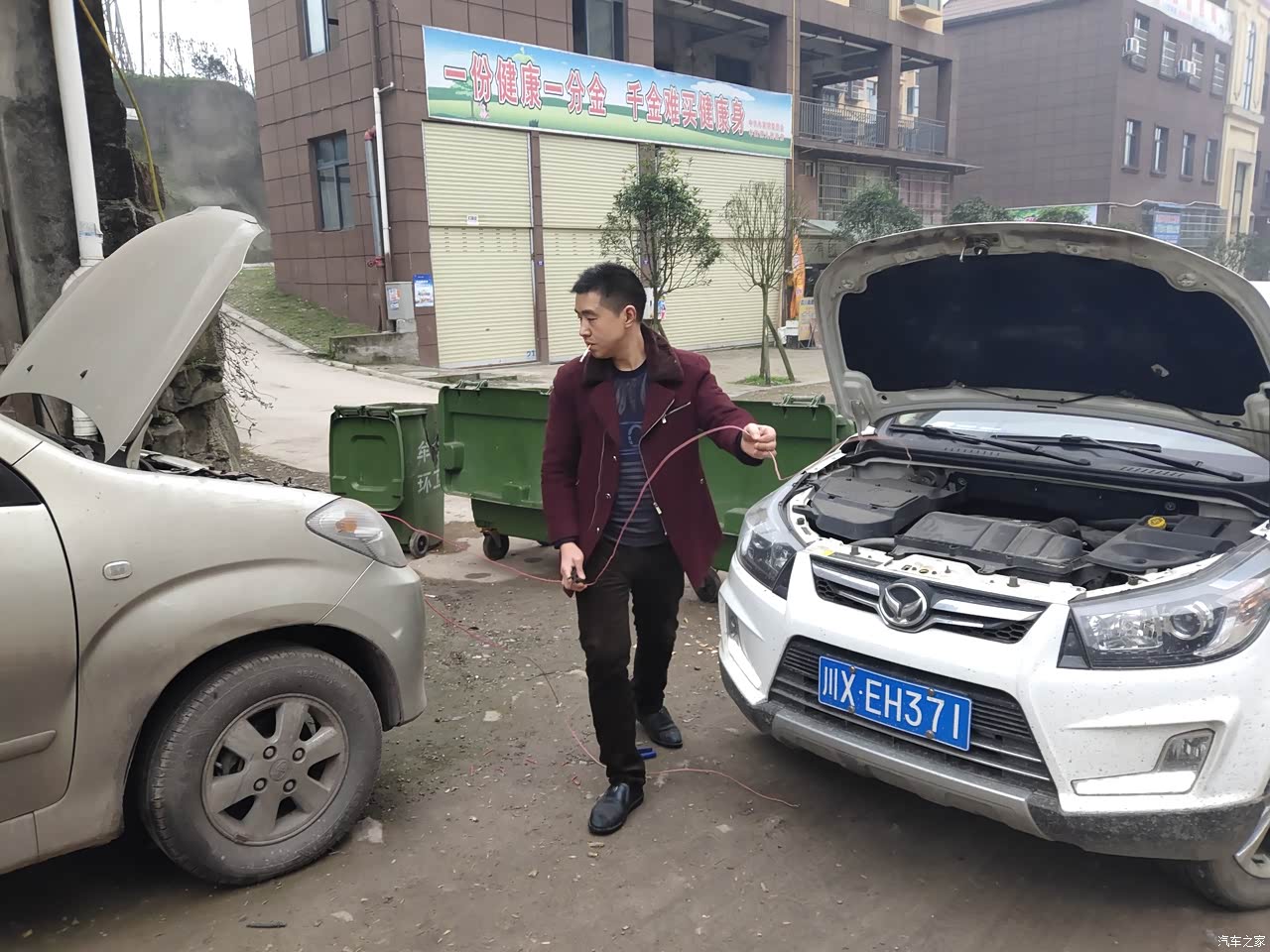 这是一个亲戚的车电瓶没有电了,过来帮他搭个电,没有搭电线,随便找的两根电线搞定。