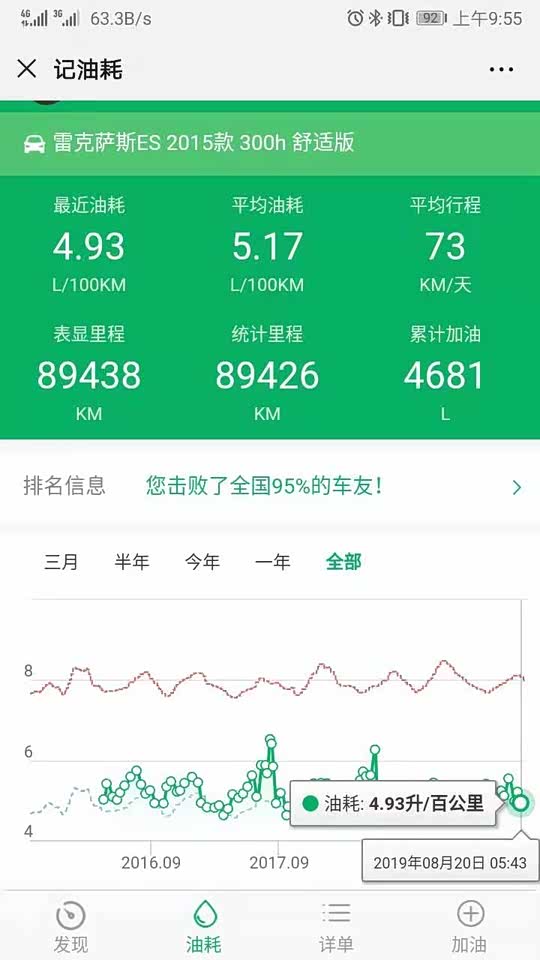 夏天已经过去由于多数是在高速行驶,油耗跟气温变化的相关性比以前要小一直在4.8-4.9升/百公里。估计每年秋天4.6升/百公里的油耗可能也比较困难达到。