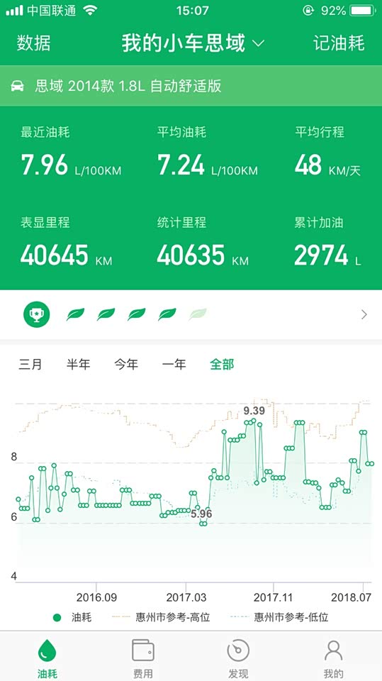 买车接近2年每次加油都记录下来,油耗曲线也节节升高
