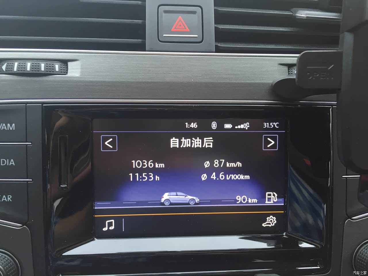 这是加满一箱油跑高速成绩,百公里油耗4.6升,跑了1036公里,还可以续航90公里。