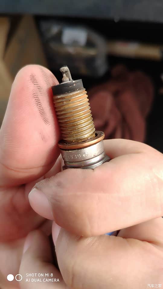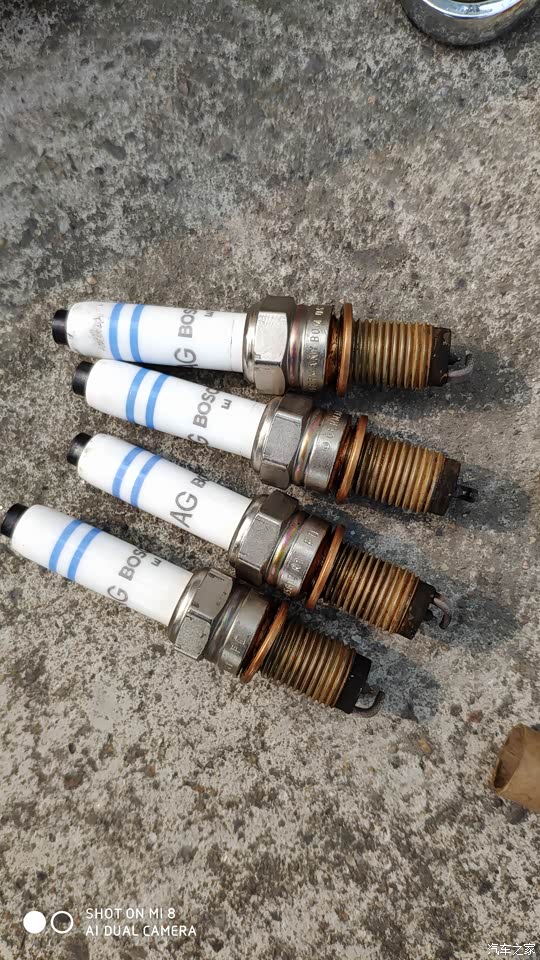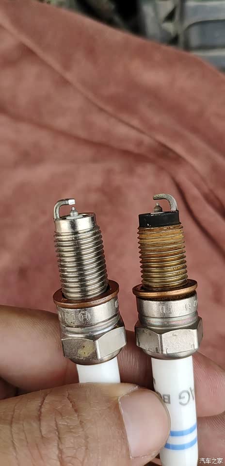 新的火花塞和拆下来的对比。