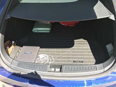 Model S那过目难忘的通常只有超跑才拥有的帅气线条下,隐藏着的是她完全可作日常家用的硕大空间--后排即便是坐满3个中年人空间也依然绰绰有余.尤其需要强调的是,因为电动车没有传统燃油车那些诸如传动轴,排气管等必要组件,所以Model S的后排地面是完全平整没有任何凸起的.这有什么用你问? 当然是后排坐中间乘客的舒适性的大大提升了:姑娘们再也不用担心夏天穿裙子还要劈开腿坐啦.另外因为轿跑车型后部的溜背设计,坐在后排的高个子乘客的头部空间可能不会特别满意,但选上全景天窗这问题也就基本上解决了.最后不得不说的就是特斯拉独有的Frunk,对,就是前背箱.因为没有发动机,所以其他车放置发动机的地方在特斯拉上是闲置的额外的储物空间,足以放下一个行李箱那么大! 5/5