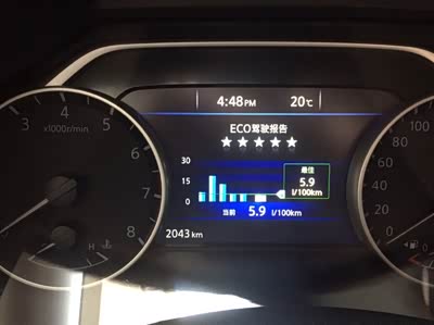很惊喜,因为首保过后就一直在市区跑,经常堵车,综合油耗居然从9.5慢慢降低到9.2,意想不到啊,曾经不堵车的时候开出过5.2L/100km的单程油耗,经济性不错