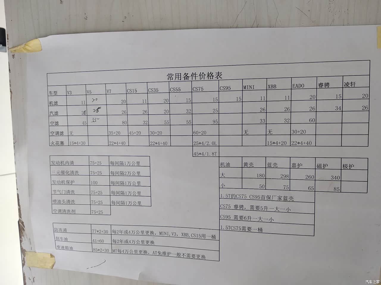 保养只做了基本保养,机油机滤汽滤,值得说的一点,这车不带空调滤,所以是后来买的,空气滤也是自己换的,本来上次保养想着快20000了,换个火花塞,但是售后小哥挺实在,说只要没有太明显的顿挫和乏力就不用换了,我一听,那感情好啊,索性我也不换了,买一套回头自己换吧,看了操作也挺简单。PS另附一张河南郑州地区某四儿子店的价格表
