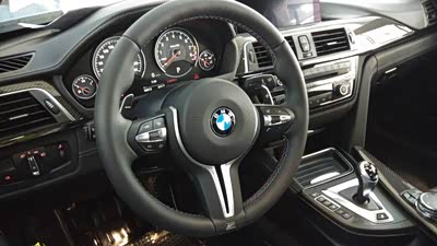 内饰细腻做工非常好,设计风格很宝马,跟普通3系设计上基本一致。碳纤维的材质应用,很有超跑的感觉。黑色真皮+碳纤维装饰板非常有战斗气息,中控屏分辨率很不错,换挡杆手感极佳。三幅式多功能M运动方向盘,搭配了极具“挑逗”性的镁合金换挡拨片。为了进一步提升性能气息“M”标识随处可见。