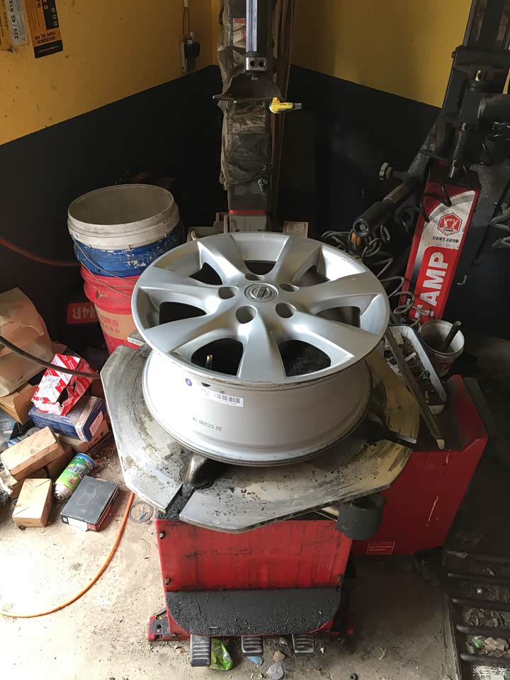 这周二,上午下班发现右前轮一点气都没有了,自己检查了下轮胎发现正中间有个钉子扎的口,钉子已经没了,唉,没办法回不了家了,赶紧找了附近一熟人保养师傅来打气,然后我把车开到他维修店。扒下轮胎发现,钉子把轮胎中间的金属丝给戳断了(倒霉啊),所以保险起见打了蘑菇钉(50元),然后检查电瓶电量和发动机发电量,结果后者正常,电瓶低于10伏,没办法,花了240元换了同款风帆蓄电池。总共花费290元。换电瓶的时候顺便加了冷却液。