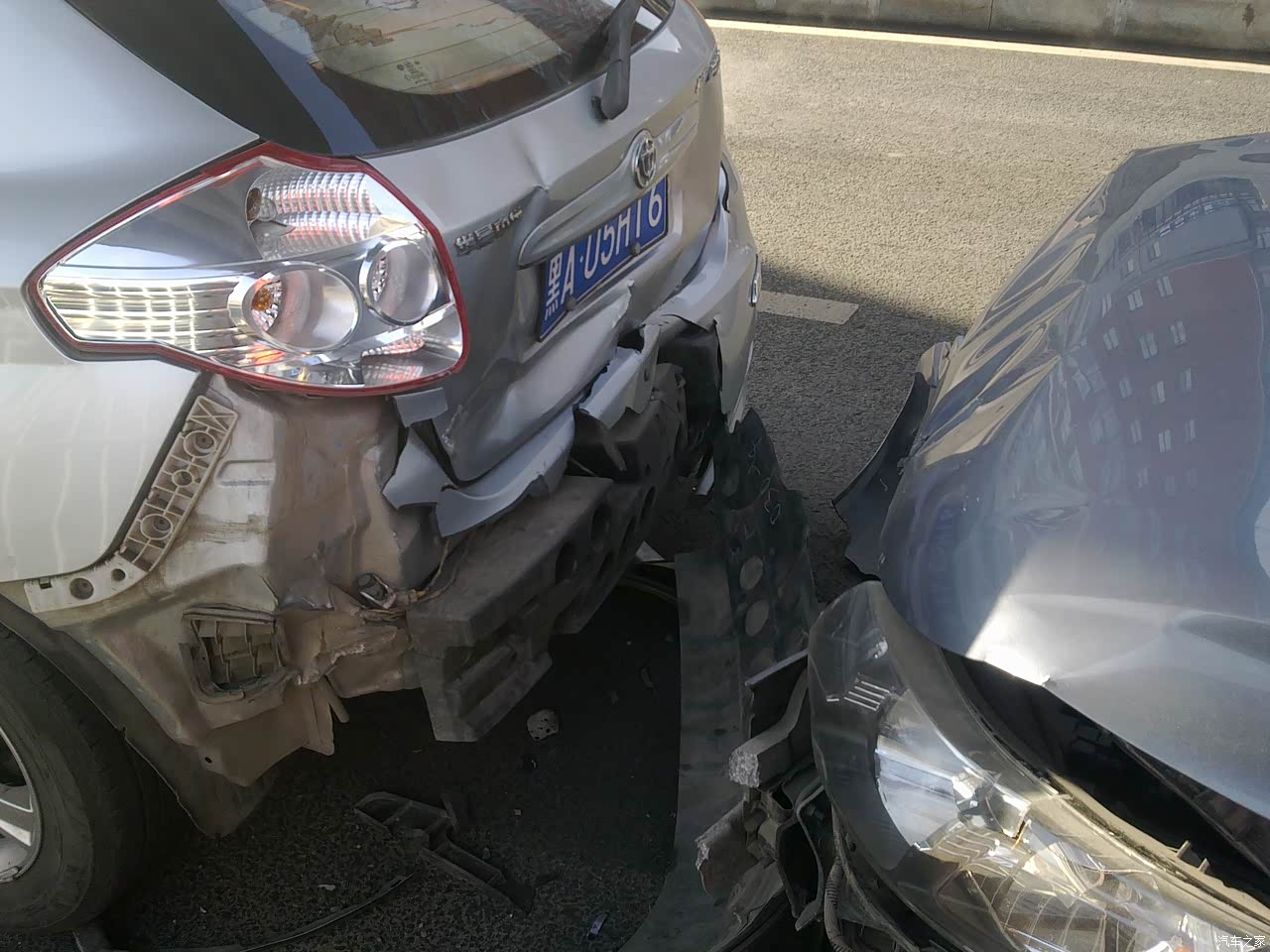 车辆曾在路面运行中被一初学车的老者追尾过,对方全责。
