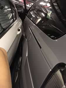 车硬!有一次车库除了,右后门把转角的防护塑胶都整个挂掉了,车漆一点事都没,擦掉表面黑的几乎看不出来受损。