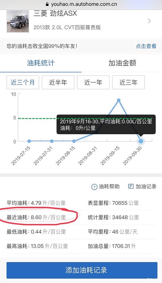 一直保持在官方的综合油耗值内,这款发动机虽然技术老旧,但是还是不错的选择。