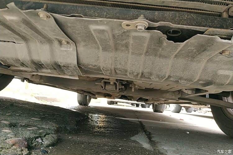 这就是发动机护板磕碰到的一块儿。幸好发动机没事儿。