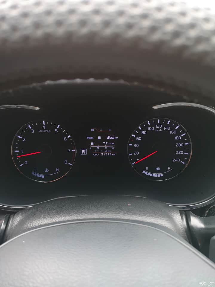 秋高气爽的,平时也不开空调了,油耗6.8-7.2之间徘徊,k3自身车重不大,加上动力组合不错,油耗还是很喜人的。