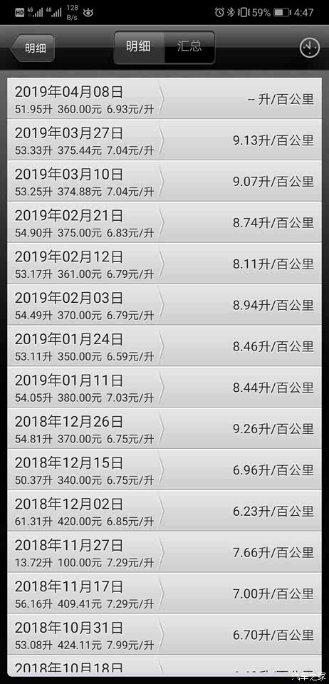 近半年来油耗统计(来自汽车账本APP)