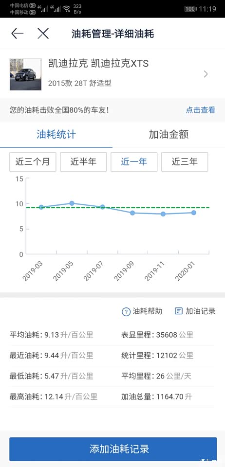 这是汽车之家上的油耗记录和统计。不是省油的货。