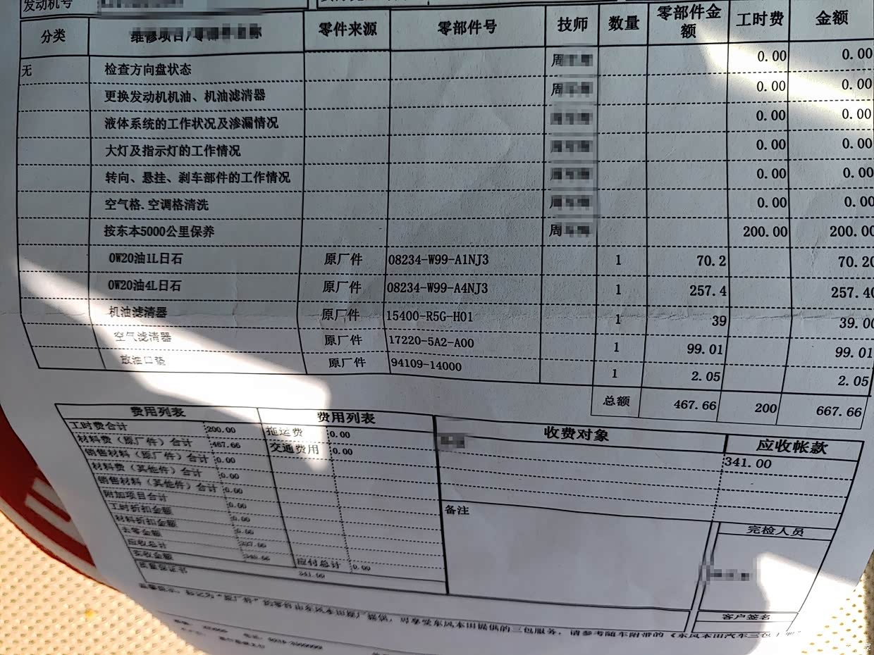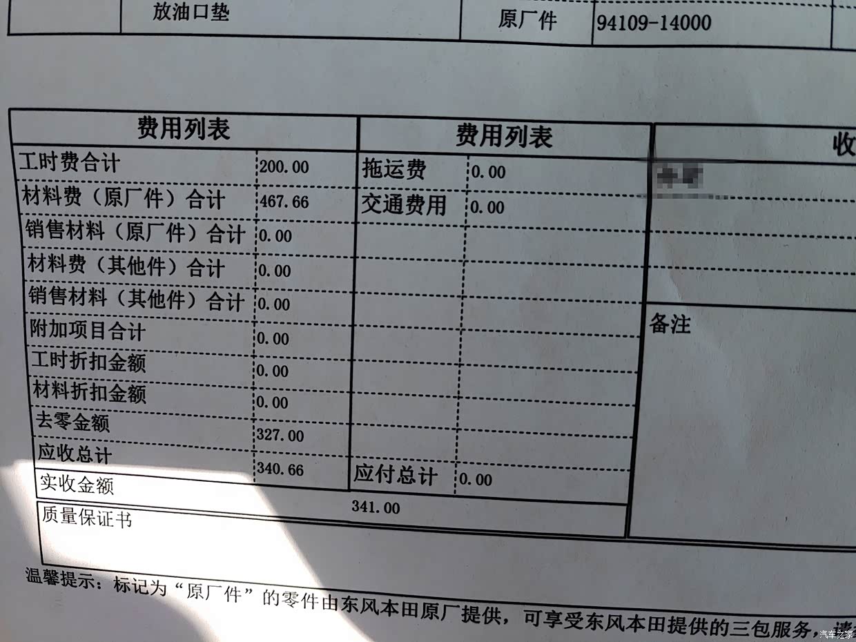 因为东本首保是3个月,之后是6个月/5000公里一保养,所以现在做了2次保养。除了免费的首保之外,4s又送了一次,在保养上,我还没有花过钱。