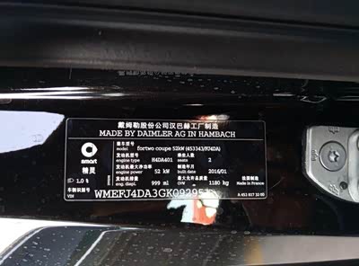 smart fortwo 2016款 0.9T 66千瓦硬顶先锋版