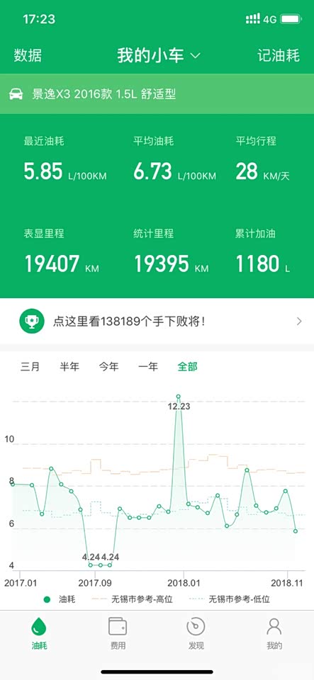 上下班开开的,每次加200块油,差不多跑400公里左右,平均油耗6.5左右,还是很满意的