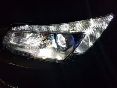 日间行车灯很现眼 我觉得比细的灯带要好看的多 晚上远近光亮度很充足