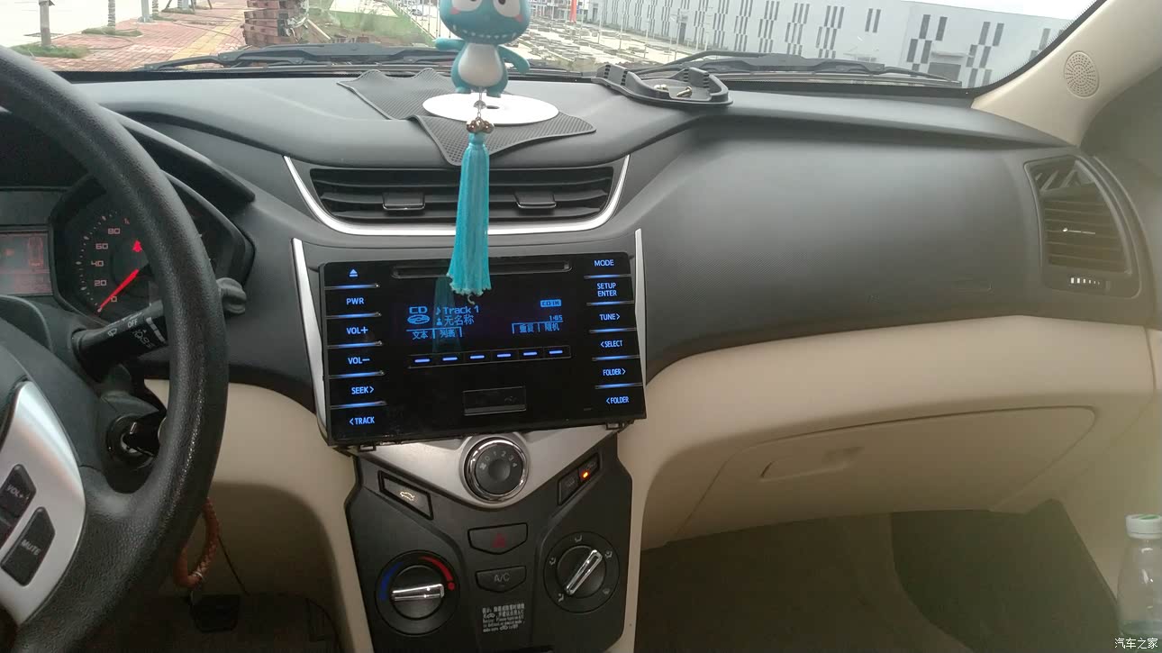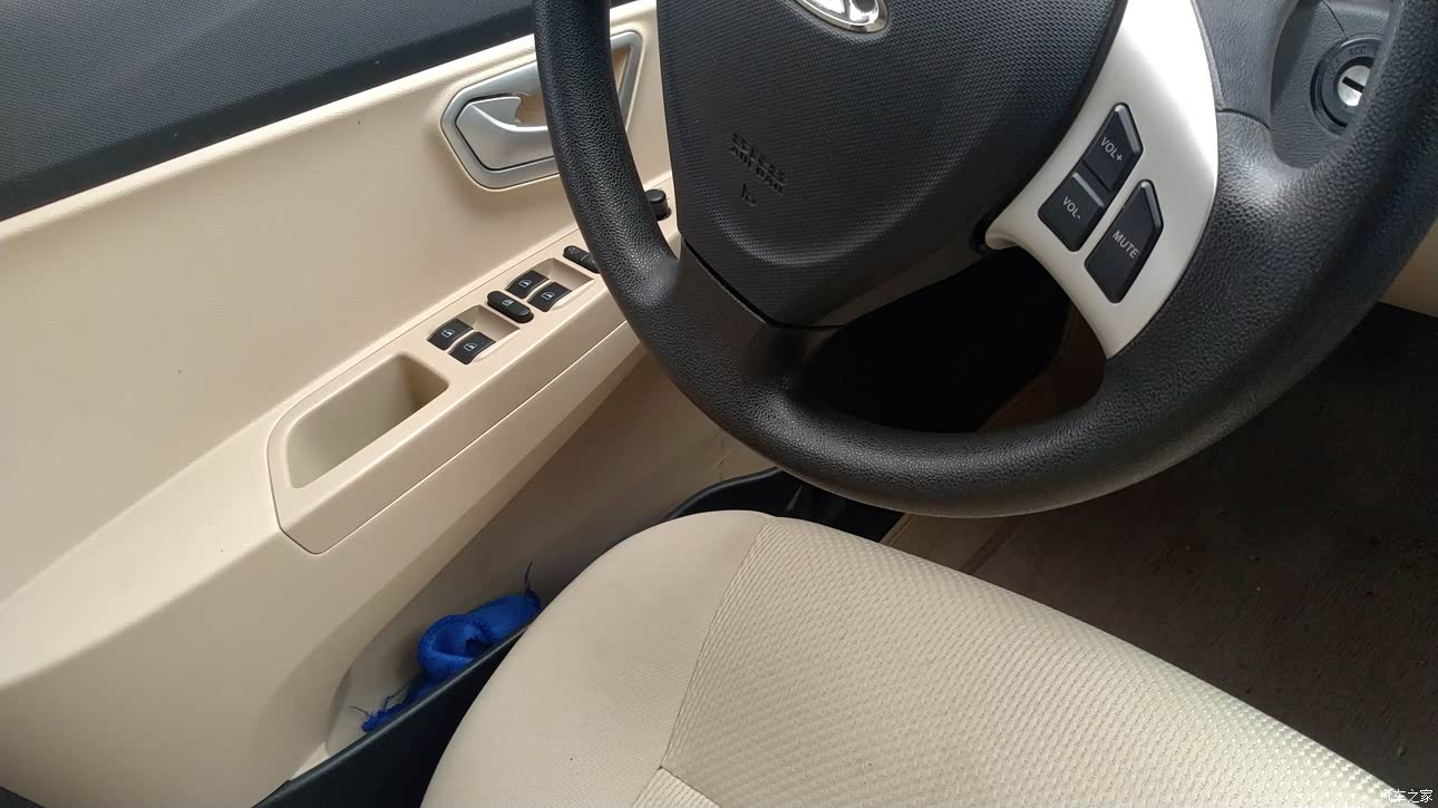 这个价位,内饰也就这样了,全是塑料的,好在中控下部用的米黄色和座椅米黄色刚好是我最喜欢的颜色,感觉很合适!