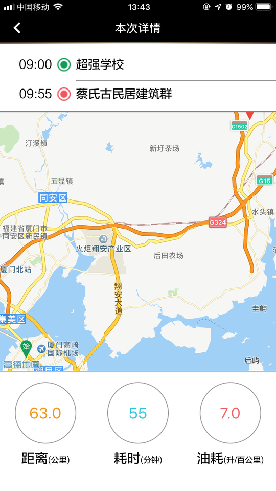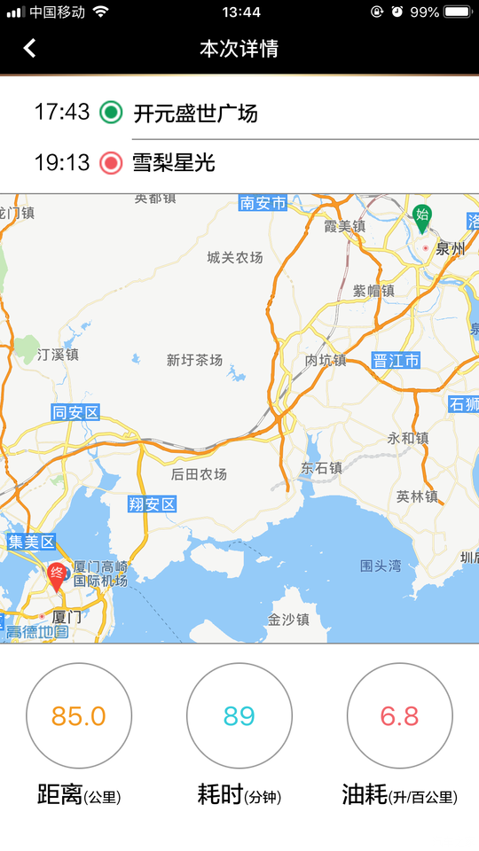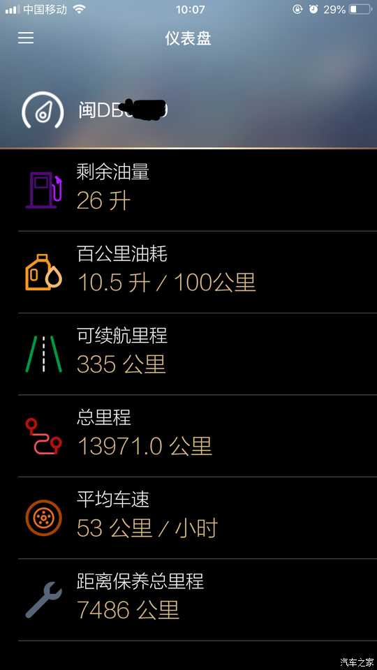 第三次保养,APP显示的每个参数,这个正常是市区的油耗,不过市区跑的路段比较短,所以油耗会高些。