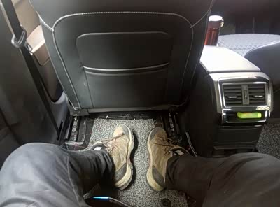 本人182,在后排轻易的二郎腿,,,,可以大部分时间都是司机。。。。。 得益于超过2米8的轴距,当前排调到我的驾驶位后,后排依然有很大余量。就是中间凸起比较高,而且中间座椅比较小和硬,不舒服,但是中间有头枕,还不错。