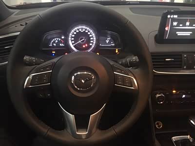 内饰最为有特色的应该是搭载独有的马自达悦联系统,集成于中控台顶部7英寸触摸屏之中,行驶中能安全地连接互联网,开启音乐,导航等功能,丰富了车载娱乐体验。再有三幅式真皮方向盘,握感饱满,左侧面板控制音响系统,右侧则为定速巡航控制板,不花俏但潮流。虽有天窗,但尺寸偏小。还有一点略为失望的是没有电动座椅,调起来还是麻烦了一丢丢!