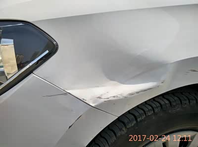 停车呗别人撞了后保险杠,还好自己又鼓了起来,买了补漆笔自己画画就算了。