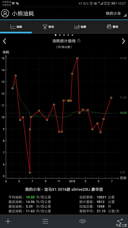 我的车主要用于上下班通勤,偶尔跑跑高速,目前行车电脑表显油耗9.6,手机油耗软件实测10.44。