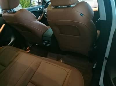 内饰看着很稳重,黑色的中控台,出风口加了一条橙色的边,中间大屏导航,还能和手机互联,显得更大气,皮革内饰板摸着都很手感,软底子,但又看着很结实。门板处都有放杯子的空隙,就是显得小了点。音响效果好很,特别是在高速上安静一个人开着音乐,听着舒心。车里面也没有啥异味,大天窗显得内饰更宽敞,明亮,