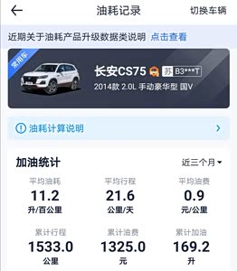 平时用车油耗感觉还行,不过自己每次加油都习惯在加油记录小程序上去记录一下,这两天拉了一下近三个月的行车平均油耗,不看不知道,11.2升/百公里还是有些出乎自己意料的,因为自己感觉应该在10.0左右的样子,每公里0.9元还能接受。