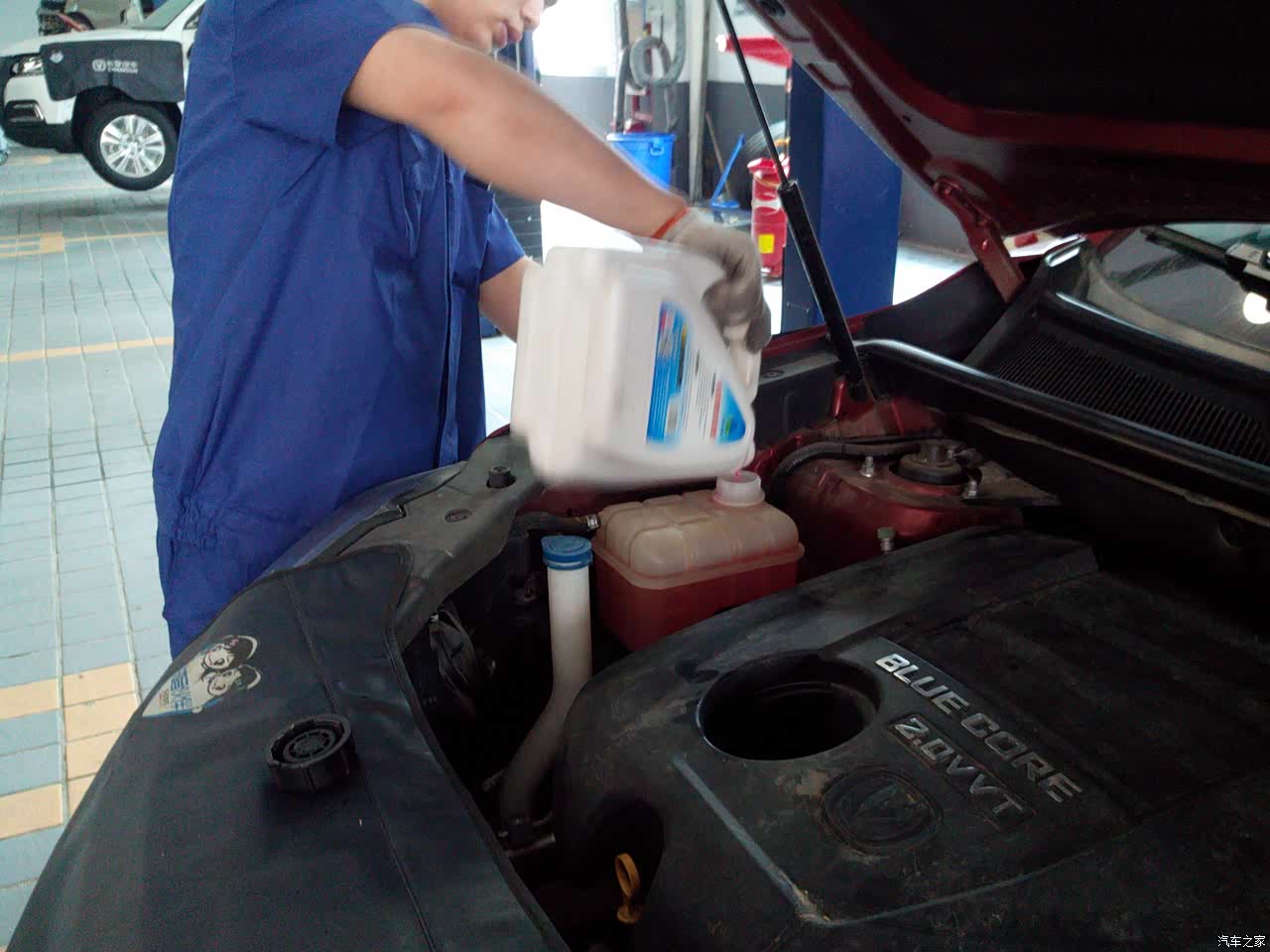 师傅在补充冷却,通常冷却液也不一定每次都要补充,这个也得看你平时跑的多不多了。