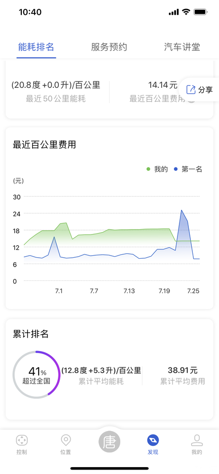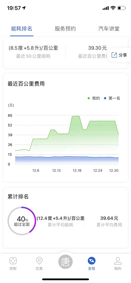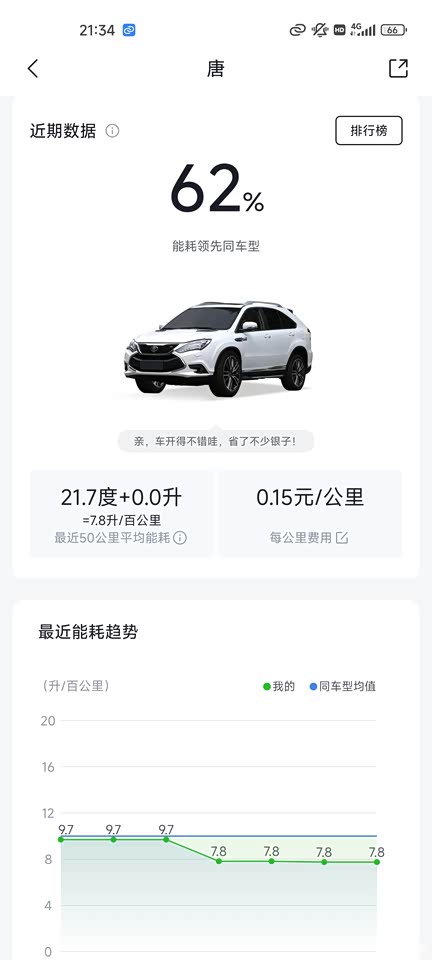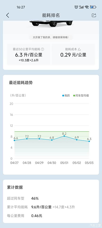 这是APP上的公里数及近50公里的能耗。能耗都是电能,市内我不HEV模式的。