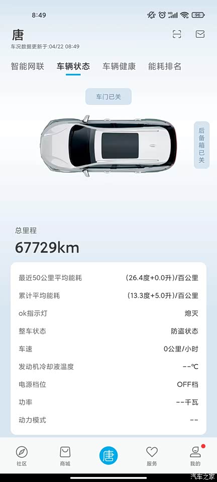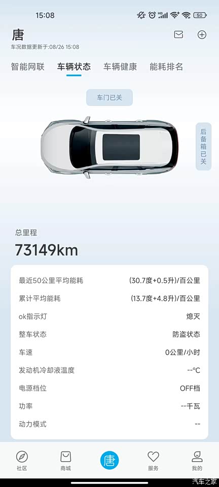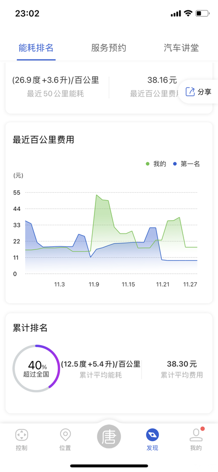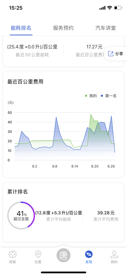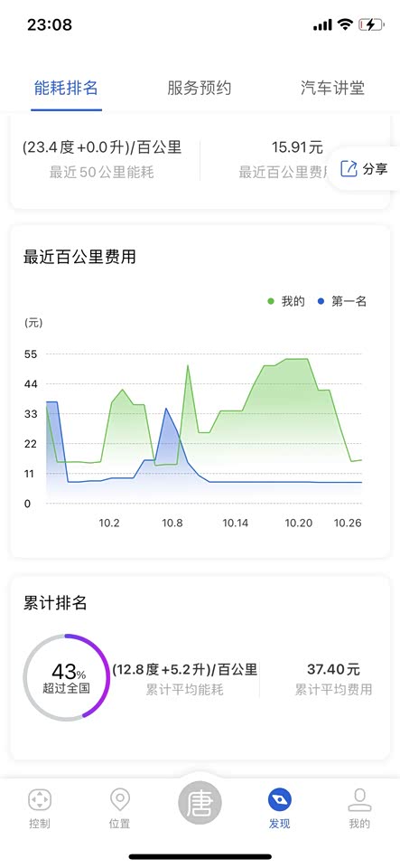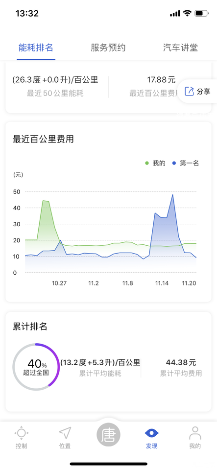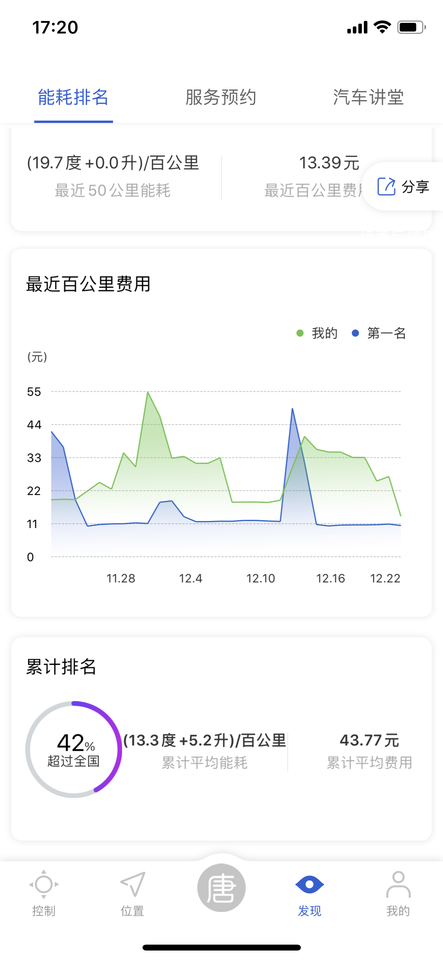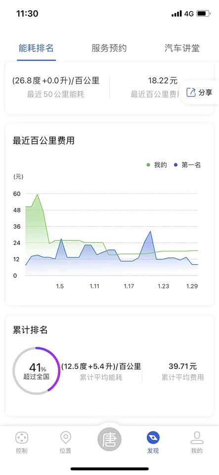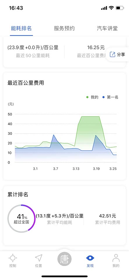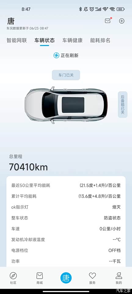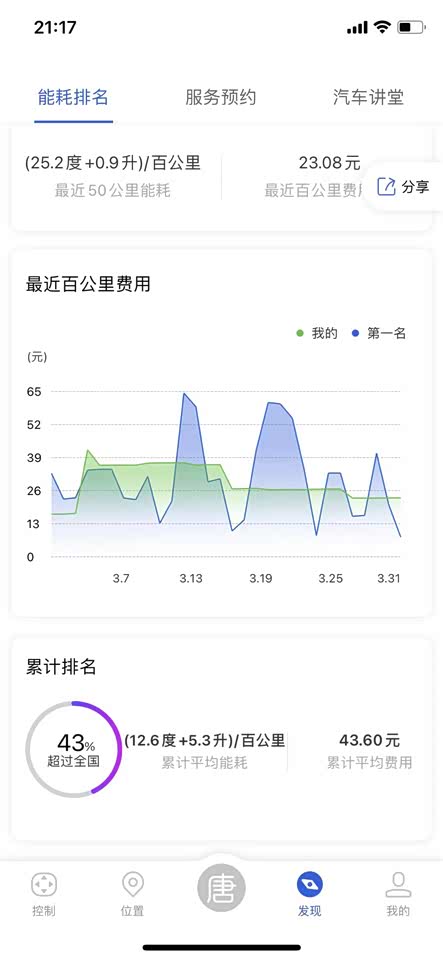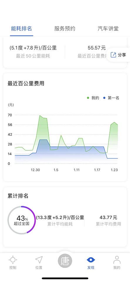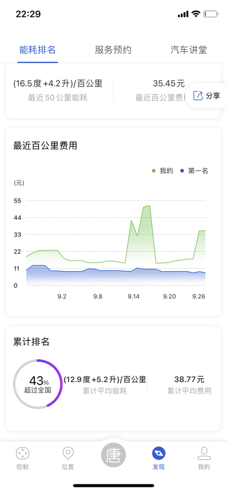 这是在手机APP上的现实。后面着50KM的能耗,我都是正常行驶,没有暴力驾驶。换了一个模块。