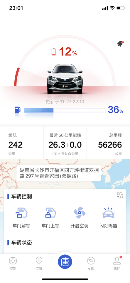 今天是2026年1月6日,目前的总行驶公里数是126905公里,其中HEV混动模式总行驶公里数是52639公里,EV纯电模式总行驶公里数是74266公里。目前的总平均能耗是15.2kWh/100km+3.9L/100km。 因为我家又增购了一台方程豹钛7,所以就把这台唐100过户,把唐100的车牌上到方程豹钛7上去了,这台车上了一块新车牌,湘AFR6611,这个车牌也挺好记的。