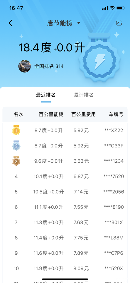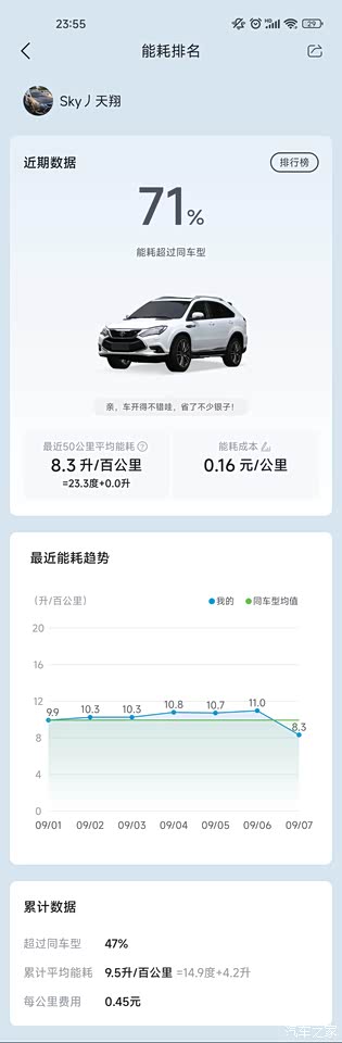 这是所有历程的能耗和油耗~