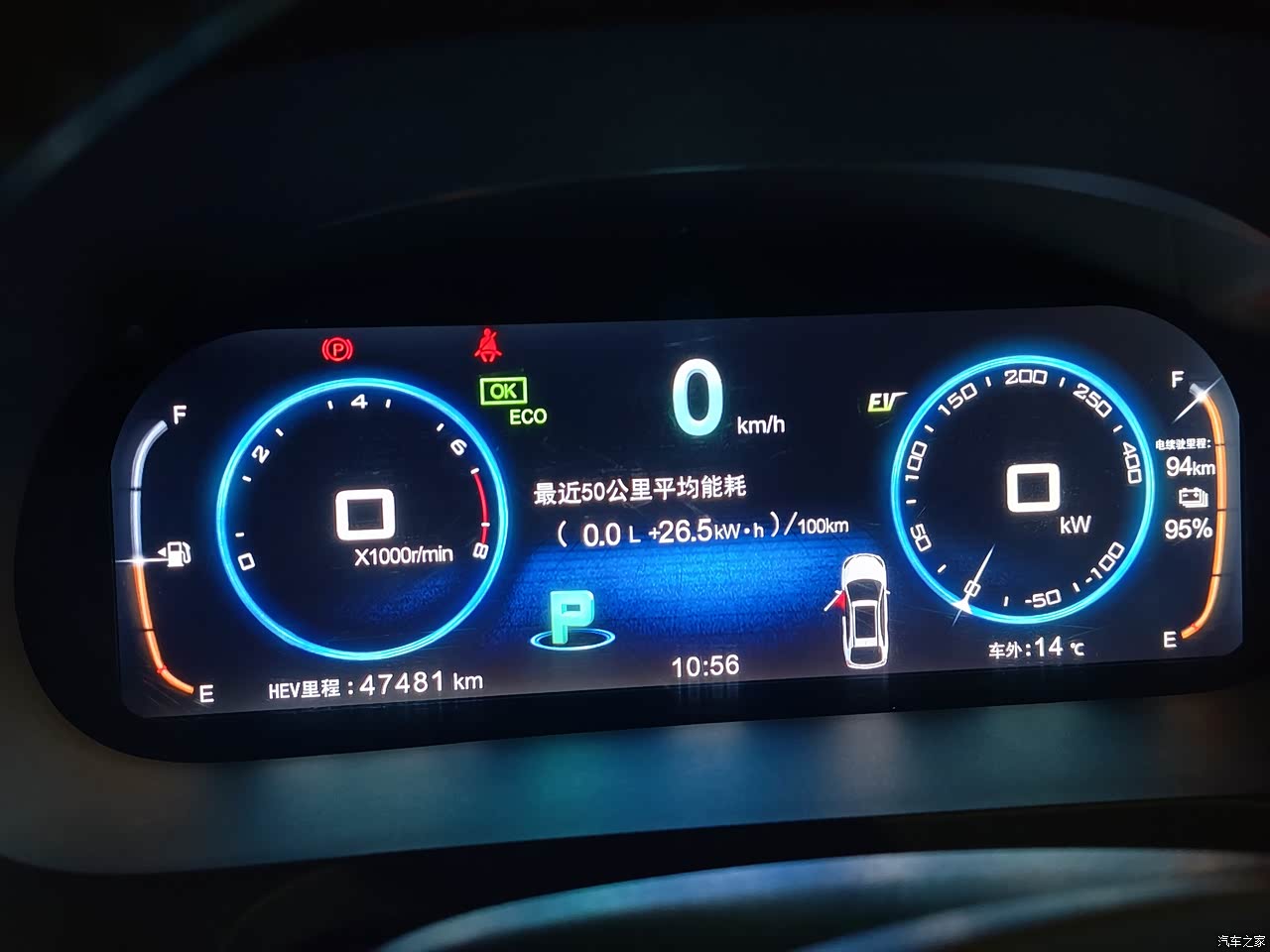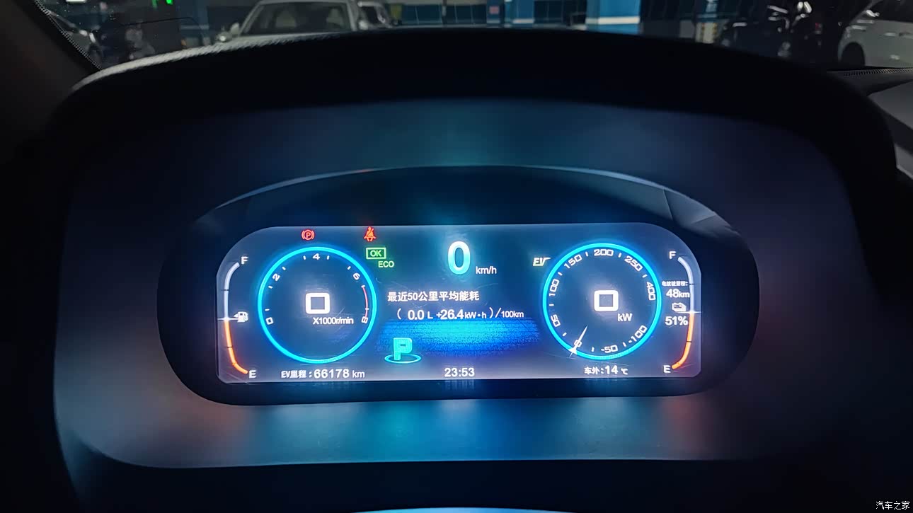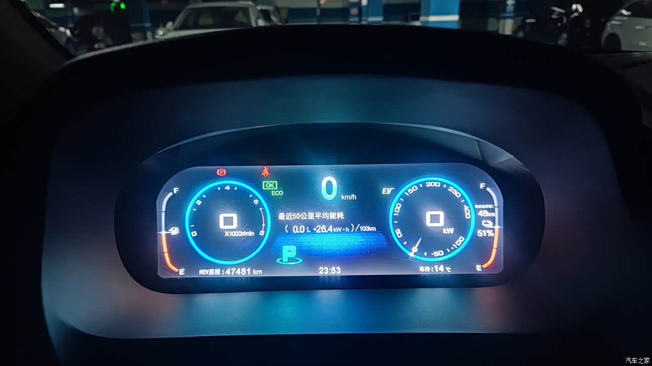 目前全用电··所以油耗可以忽略··不过4S店的帅哥提醒我,首保的时候5000公里至少还是要跑1000公里的油电混合。。所以打算跑高速的时候再开。市内纯电够我用了,反正充电方便。