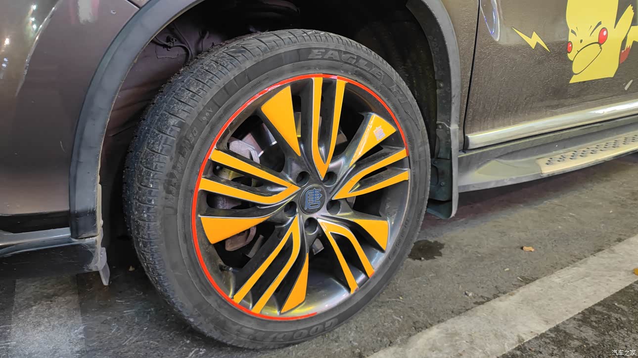说句实话我对它的外观觉得一般般。。。尤其是那对假鼻孔。。。但是轮毂变大了,轮眉变窄了,这两点可以加分。