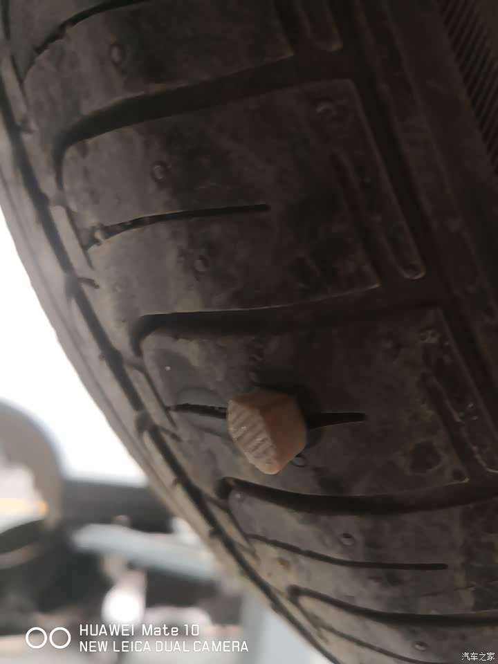 一个钉子,不知道什么时候扎上的,不漏气,换机油时才发现的。