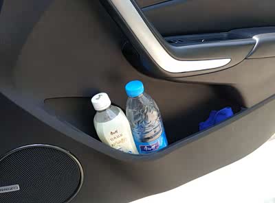 储物空间还是不错的,每个车门上都有放550ml瓶装水的位置,还可以放些其他的东西,前排座椅中间的扶手下有个储物箱,可以放下些零碎的东西,后排座椅中间的扶手放下后有两个放水杯的位置,非常方便后排乘客的需求。
