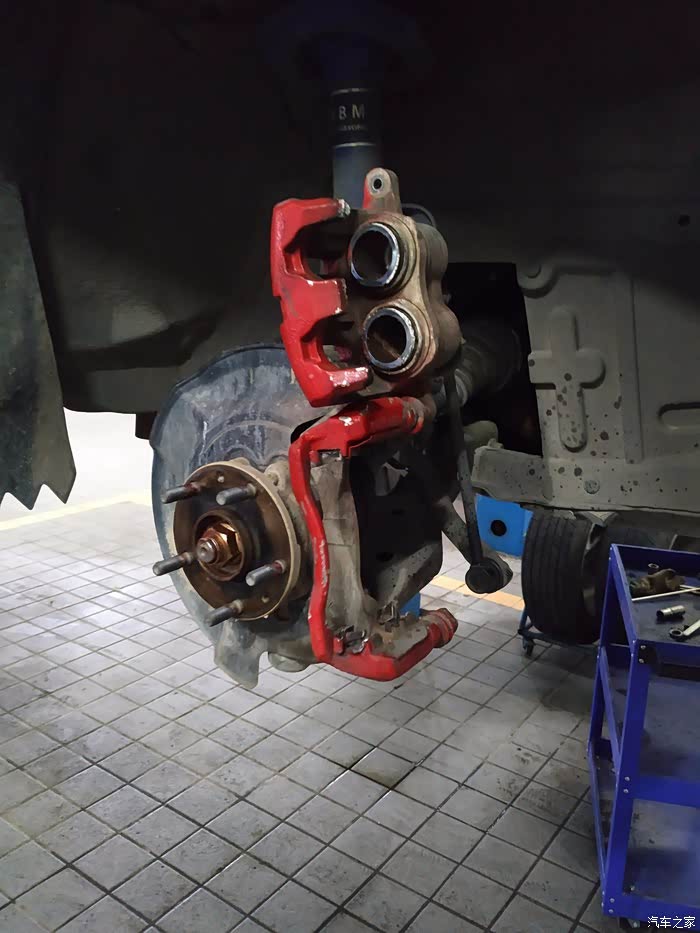 这是做刹车保养的,更换全部刹车片,而且还把碟盘都磨光一次