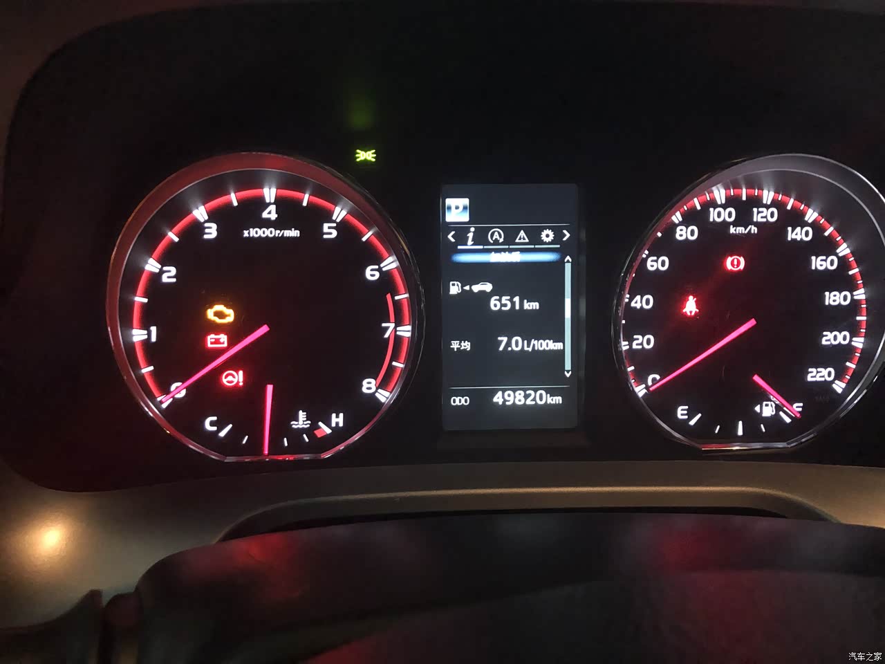 1.这车的油箱是不是有点忒小了……做为一台SUV,跑个长途是很平常的事,即使在市区内开,频繁的加油也是让人比较头疼,一箱油根据路况能跑550km左右。 2.胎压监测、倒车雷达简配!看着仪表盘内带有胎压监测图标,却不能使用,也没有选装包。建议一丰简配能不能做得“彻底点”,把用不着的图标抹掉……虽说该车配备360倒车影像,但总觉得倒车时盯着中控屏看,始终存在盲区,并没有按规矩看后视镜倒车靠谱,如果加上倒车雷达,通过听觉和视觉的协作,倒车才更安全。