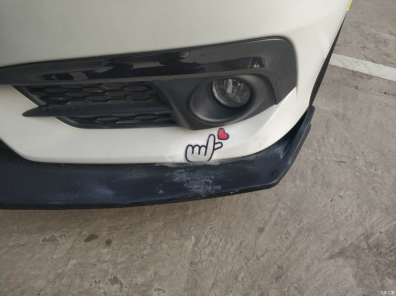 故障没什么,自己犯了个小错。五线小县城开了个万达,都挤过去,车太多,只能停路边黑漆嘛唔,停车的时候没注意,前保险杠戳了个洞😂。外面补一下估计要三四百,然后我就自己动手了。先网上查了下类似的情况取取经,最后确定方法。晚上买了点发泡剂和原子灰,总共三十块钱左右,然后刚好自己买了点贴纸,自己搞得毕竟不完美,有瑕疵,贴上贴纸刚刚好。。。大家可以看看😂有类似情况可以咨询我