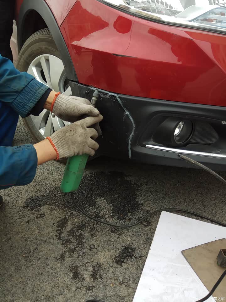 前保险杠刮擦一次,30元焊好了,红色漆自补,不仔细看现在基本上看不出来。