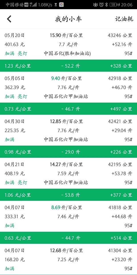 小熊油耗记录最近的油耗,从下次起加回92的油了。