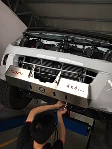 底盘整体感比较强,过减速带也比较干脆。我换了265/70R17的百路驰,又用了澳洲钢人的两寸升高套件,离地间隙增加了大约8厘米,通过性大大增加,同时还拆了侧杠。不过有些人素车玩得也挺溜,足已证明这车的越野性能相当了得。