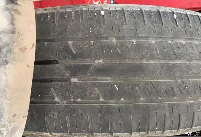 跑了这么多路了,轮胎磨损挺严重的,原车是佳通225,65,r17,102H轮胎,特点静音低油耗,但是个人感觉不耐磨,现在轮胎的胎面磨损接近磨损标记,胎纹很浅了,该更换了要不然夏季排水性就不好了。而且刹车片也该更换了。